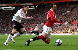 Featured Daniel Agger in match action against Dimitar Berbatov in the F.A. Cup 3rd Round against Manchester United on 9 January 2011. |